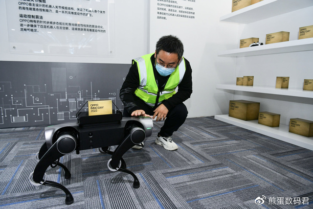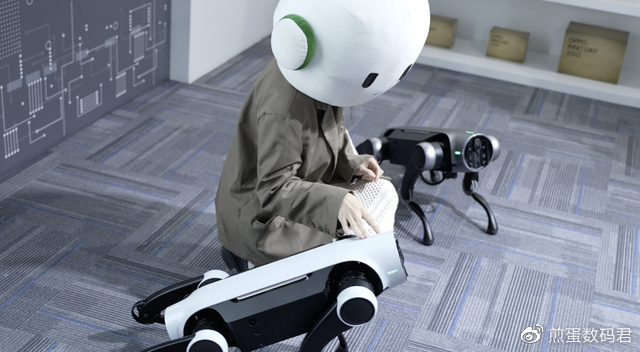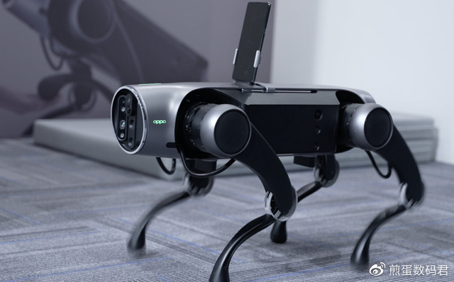 值得一提的是,除了可以与人互动,这OPPO QRIC机器狗有一定负重能力,智能程度不亚于一个聪明的小狗狗,它可以并识别快递员,代取快递等,也就是说一些简单配送任务都可以胜任。