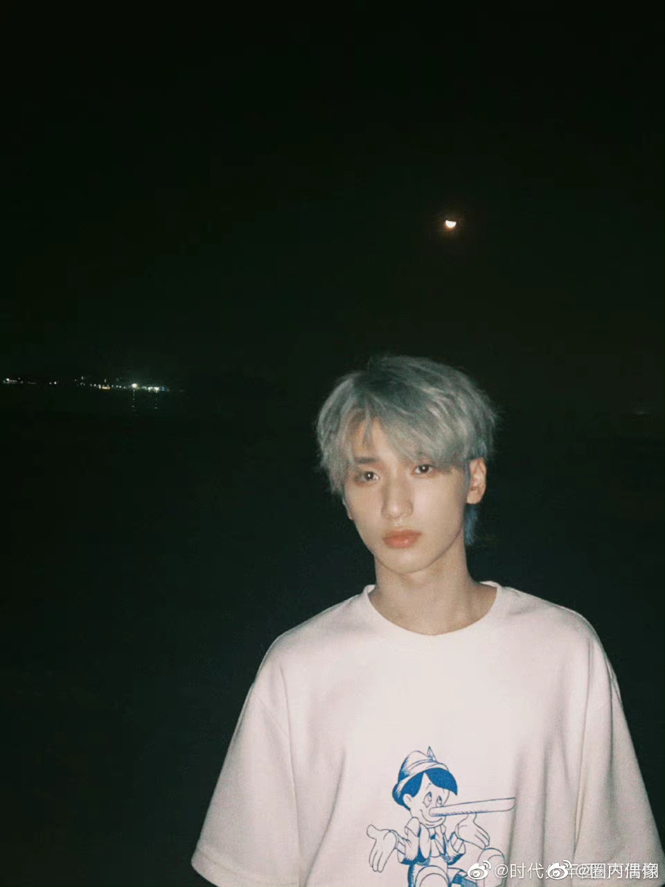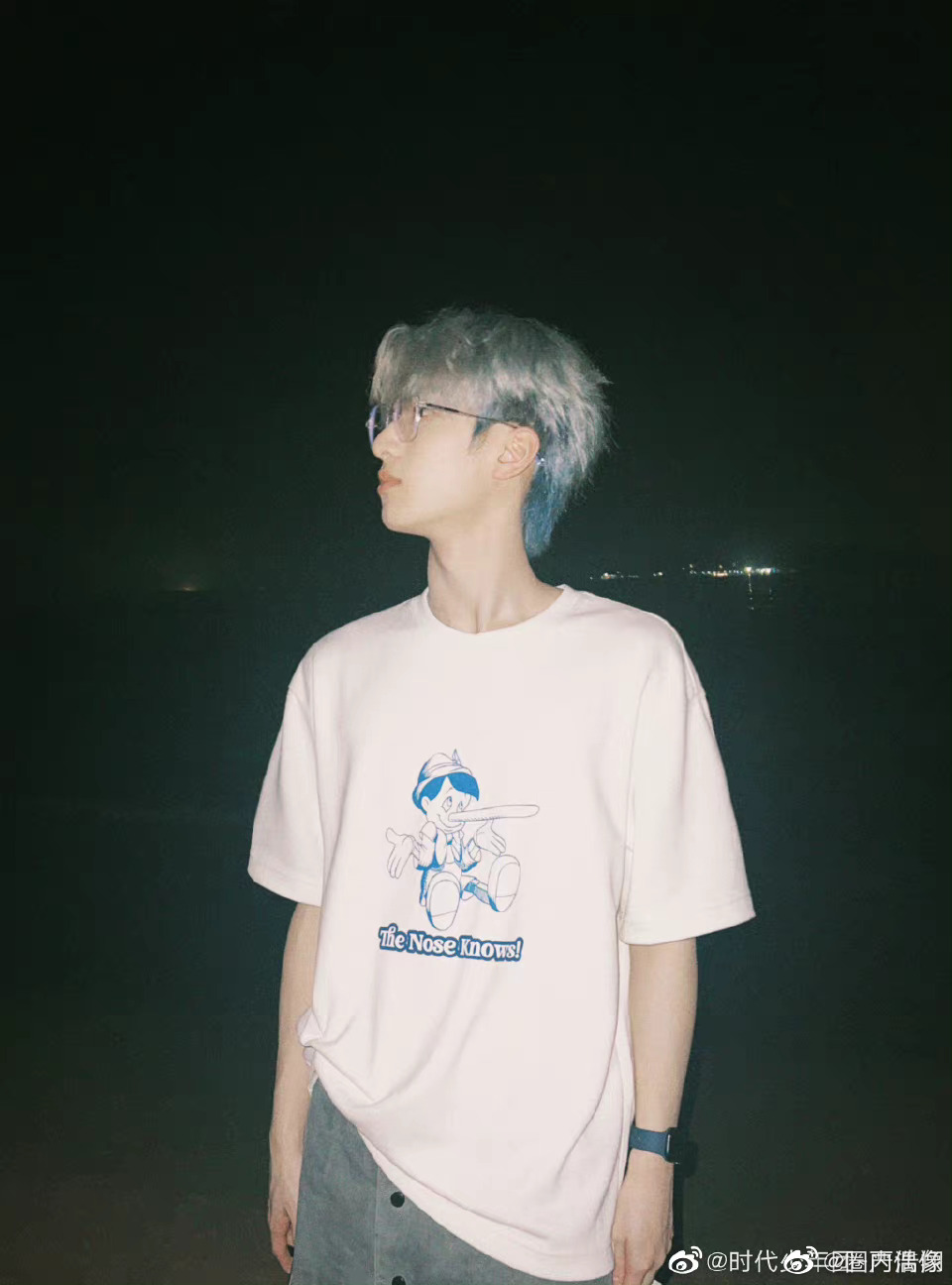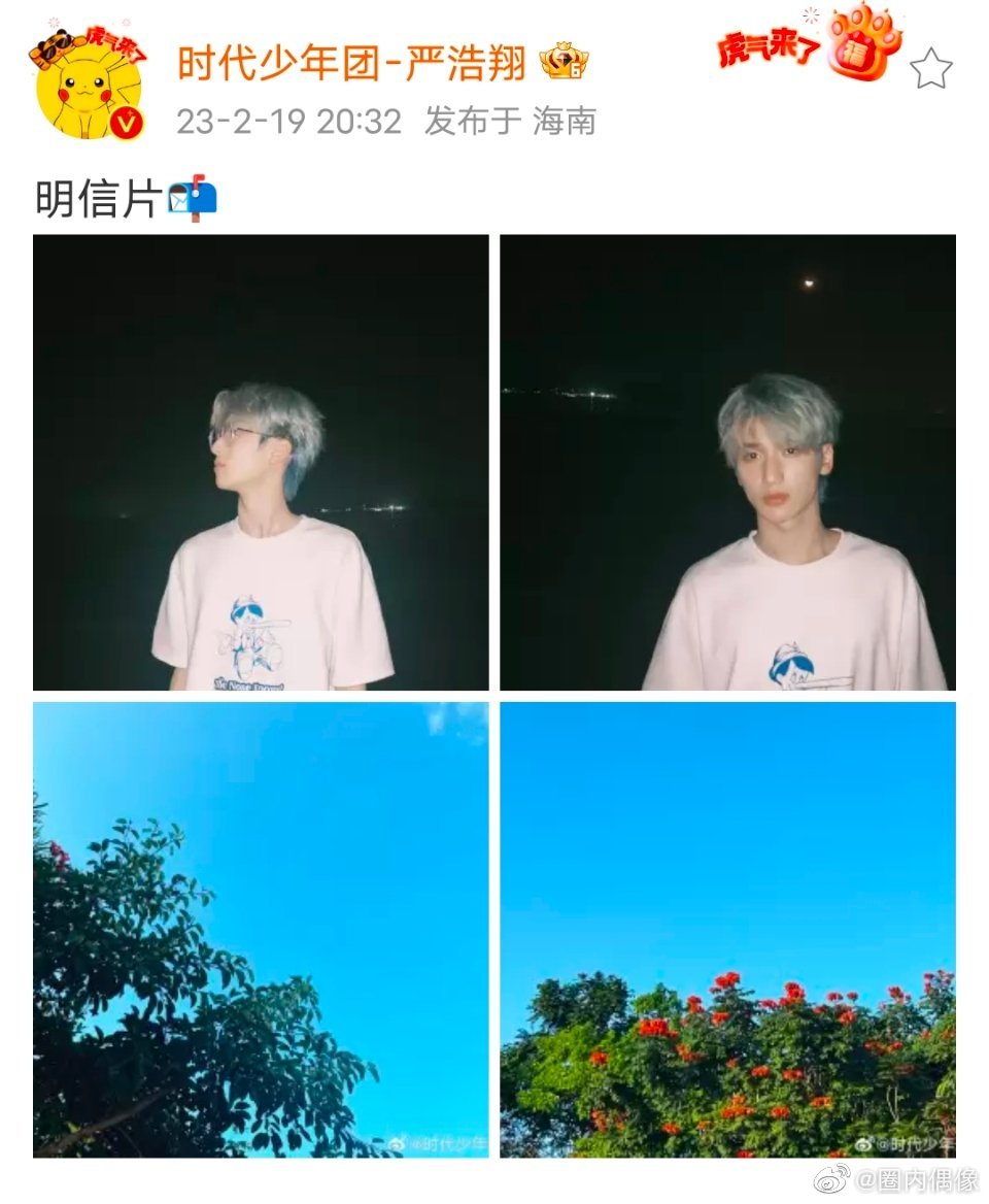 严浩翔晒海边明信片四宫格,眼镜造型好帅!