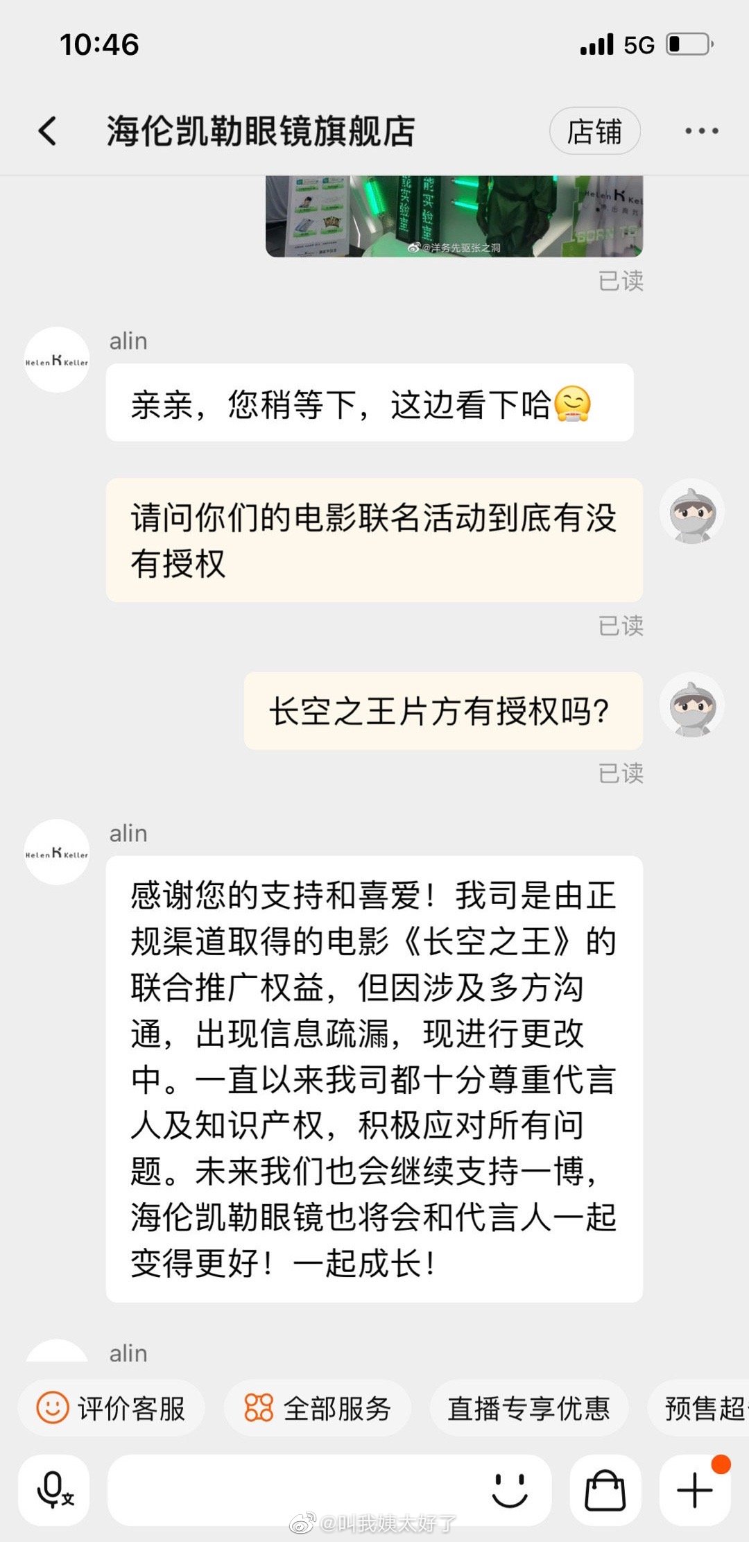 3.眼镜品牌方的某个客服说自己拿到了授权;