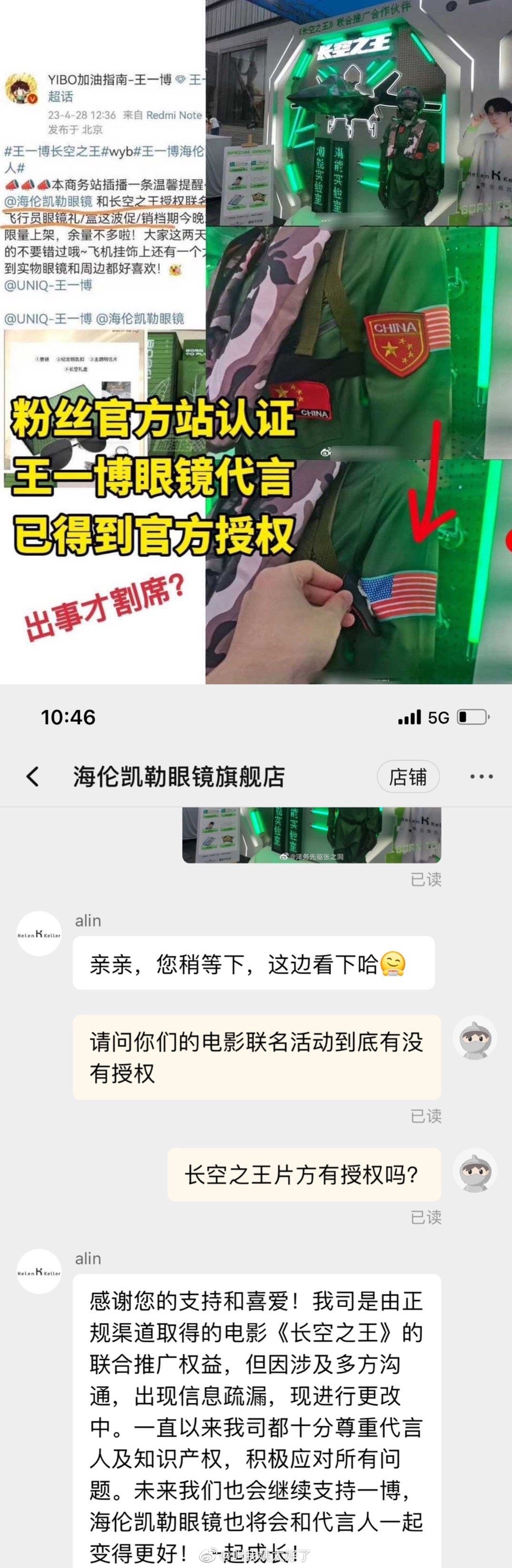 1.王一博代言的眼镜一则线下物料国旗下面贴了米国国旗;