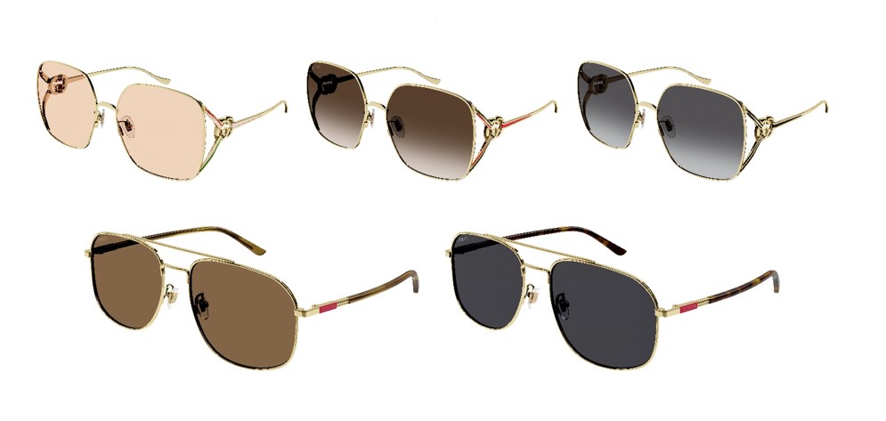 本系列将复古与现代魅力融为一体,推出一款男士飞行员框架眼镜以及一款女士超大方形款式。以不同的方式重新诠释了品牌的代码,男士镜框于镜腿之上装饰着带有古驰字母标志的金色金属牌,而女款则将双G互扣标志作为此款的功能性铰链。