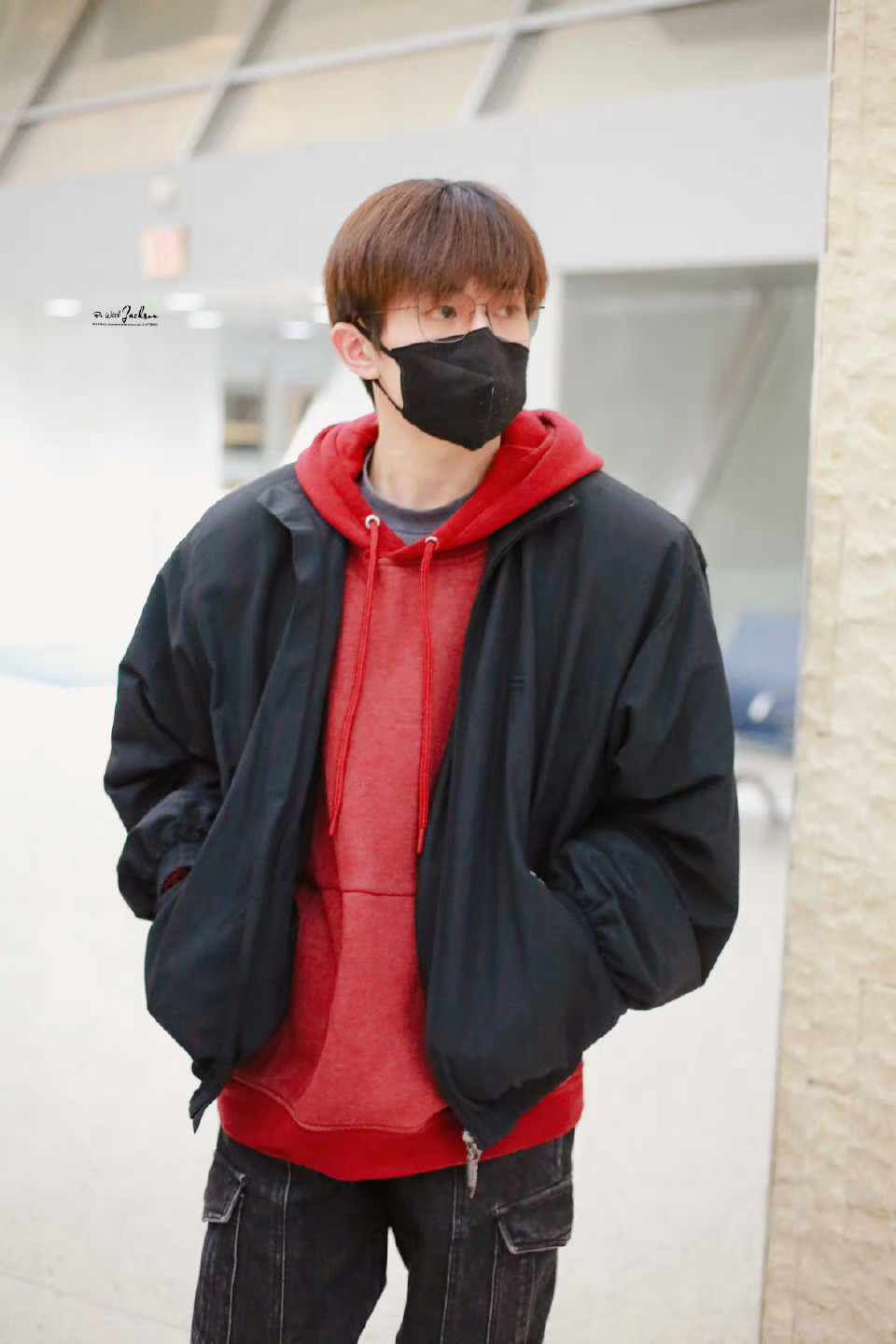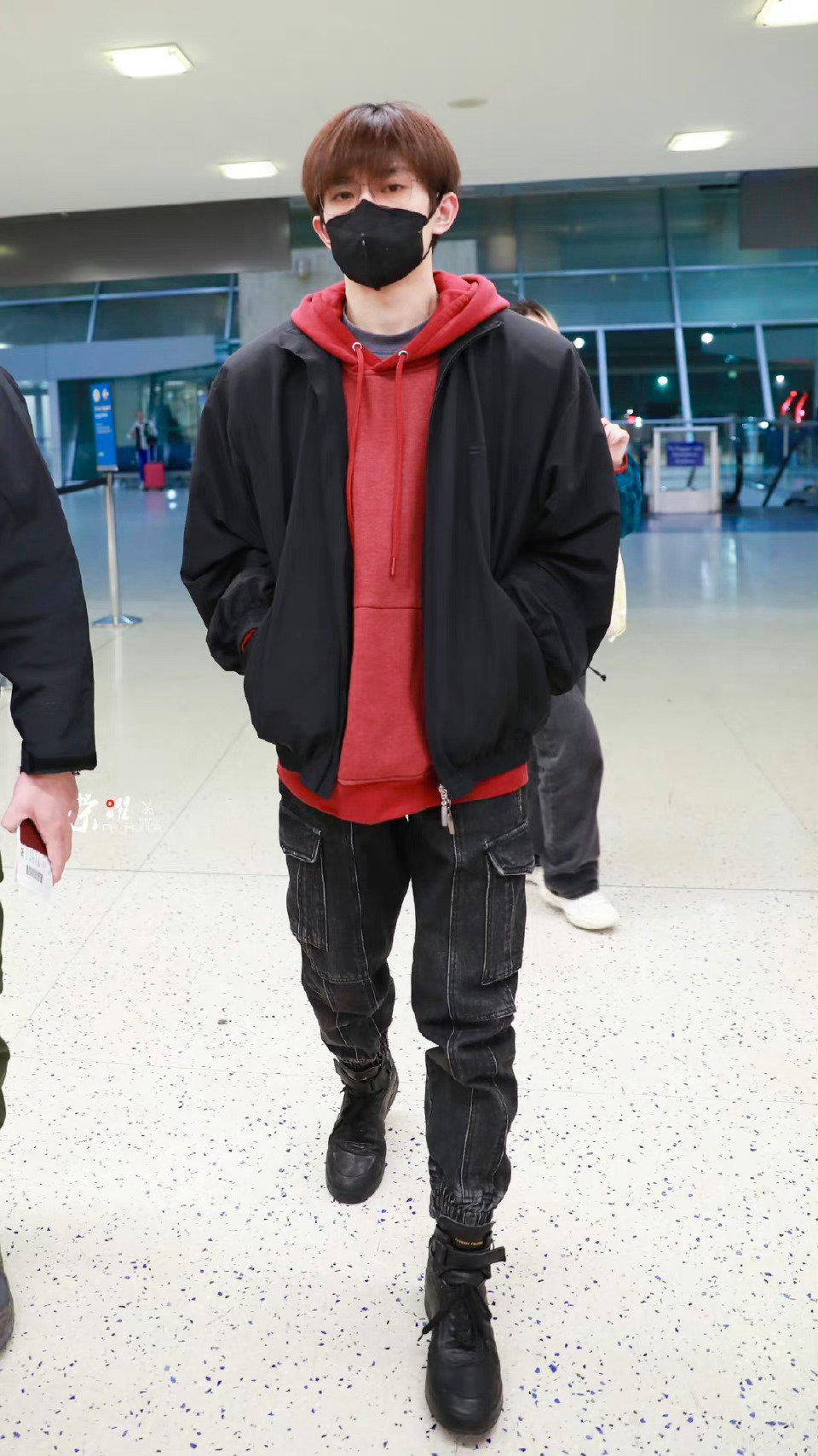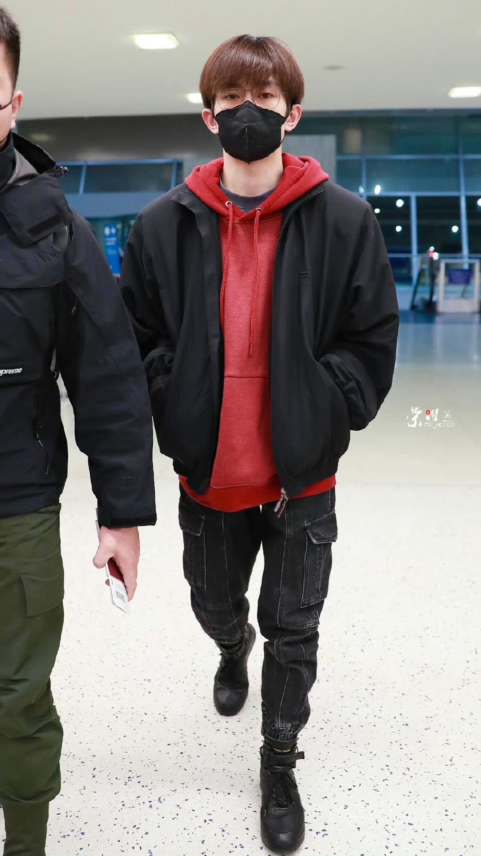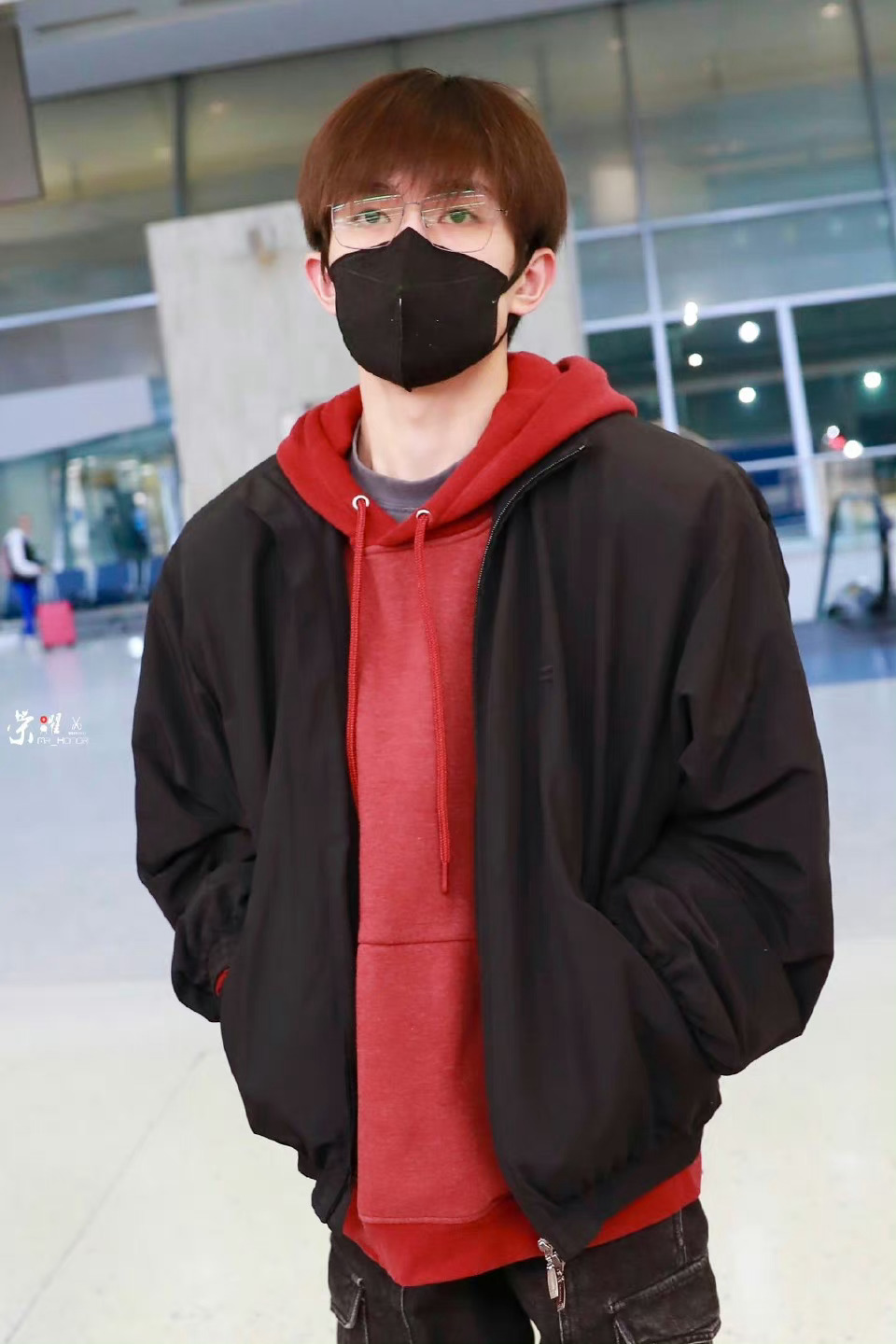 易烊千玺回国了,结束了国外的工作,红色卫衣,又戴了眼镜,回国也要多休息工作顺利
