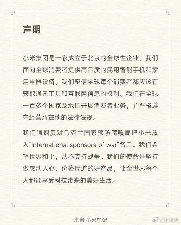 俄乌冲突还在继续,但是乌克兰在战场的“颓败”之势越来越明显,今天我们来聊的不是乌克兰战场,而是商场的事。4月13日,乌克兰国家反腐败局在社交媒体上发布消息称,对中国小米公司进行制裁。或许很多人看到这条新闻,会感觉得到诧异:小米公司又没有给俄罗斯提供武器,为什么要制裁它呢?距离上一次,乌克兰警告中国企业还是俄乌冲突前期,我们的无人机企业大疆。乌克兰副总理米哈伊洛·费多罗夫曾指控大疆,称其对俄罗斯开放了AeroScope(中文名云哨)功能,该功能可以定位乌克兰无人机操作员,导致相关乌军和平民的伤亡。