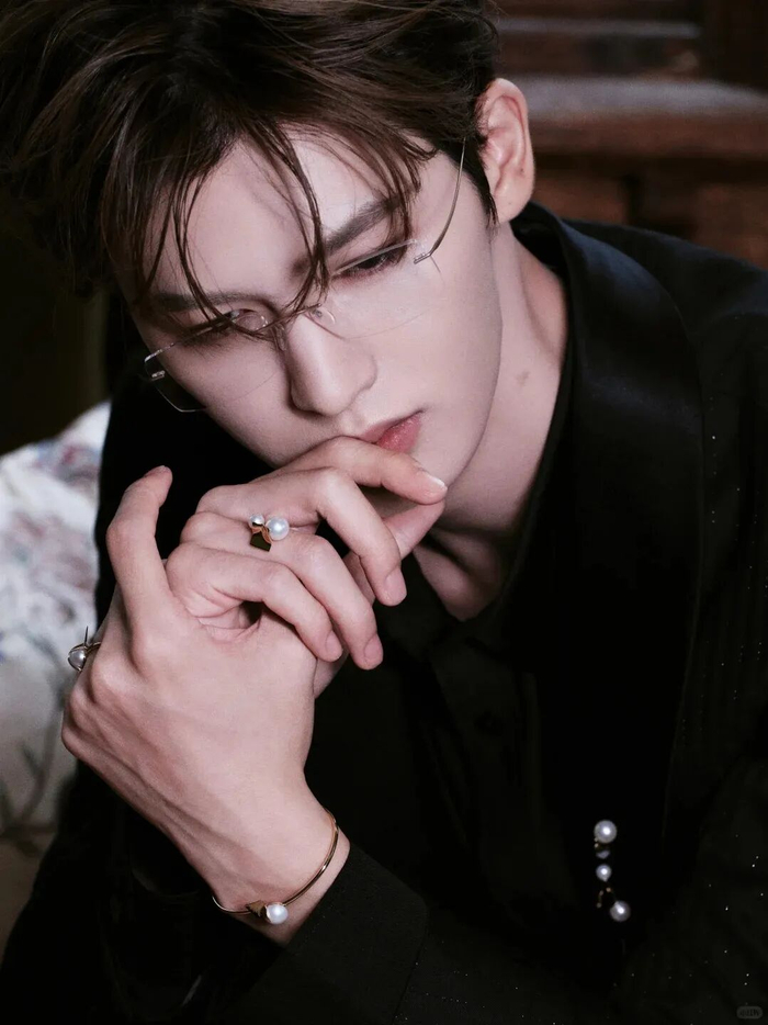 同样是用深色系搭配,朱正廷则在造型上点缀优雅的珍珠饰品。一身黑色单品搭配无框眼镜奠定高级感基础,珍珠配饰的加入打破了黑色的沉闷,尽显刚柔并济的美学。