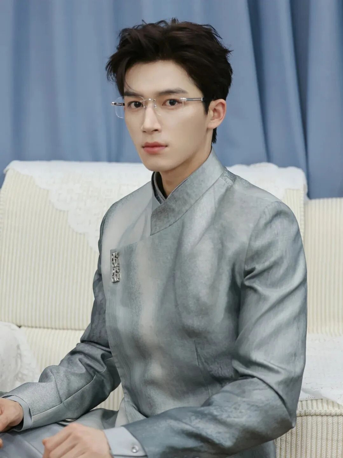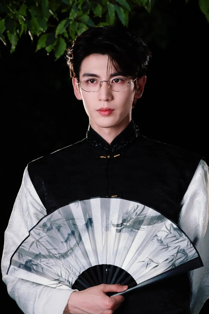 王星越这套造型中,将无框眼镜与新中式结合,就很好的诠释出清冷疏离感。水墨纹路的长衫在无框眼镜的映衬下,褪去了传统服饰的厚重感,焕发出兼具书卷气与现代感的独特魅力。