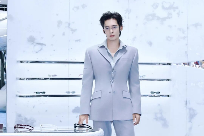 于适则用柔和的浅色调西装,和无框眼镜的通透感,共同营造出一种明亮干净的贵公子气场,展现出与众不同的温润清冷感。