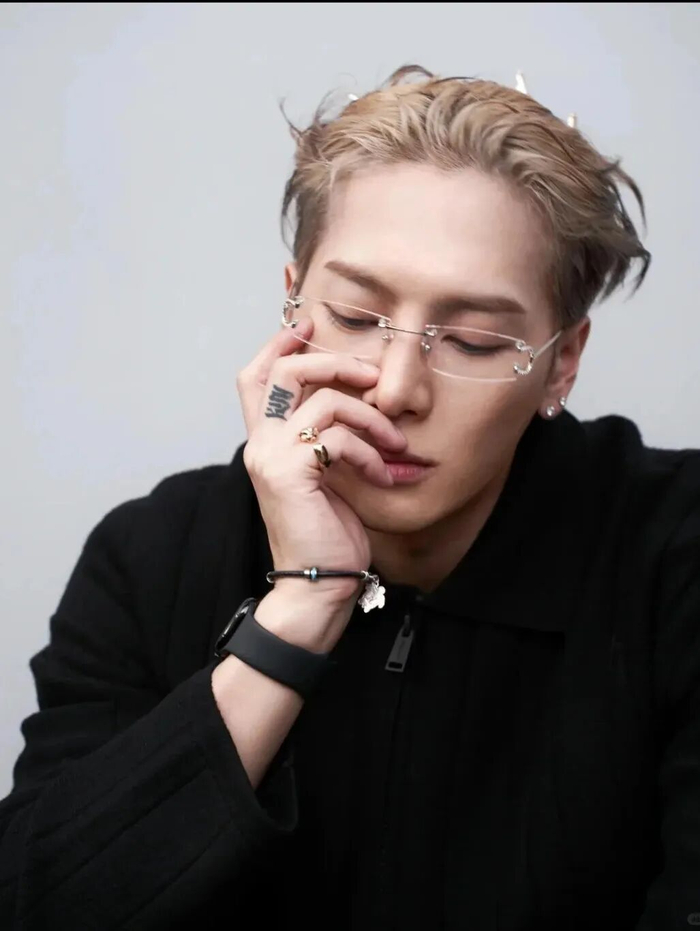 与衬衫带来的精致感不同,王嘉尔擅长用 All Black 造型搭配无框眼镜。黑色系穿搭自带神秘与酷感,而无框眼镜的加入,恰到好处地注入一丝冷静沉稳气息。